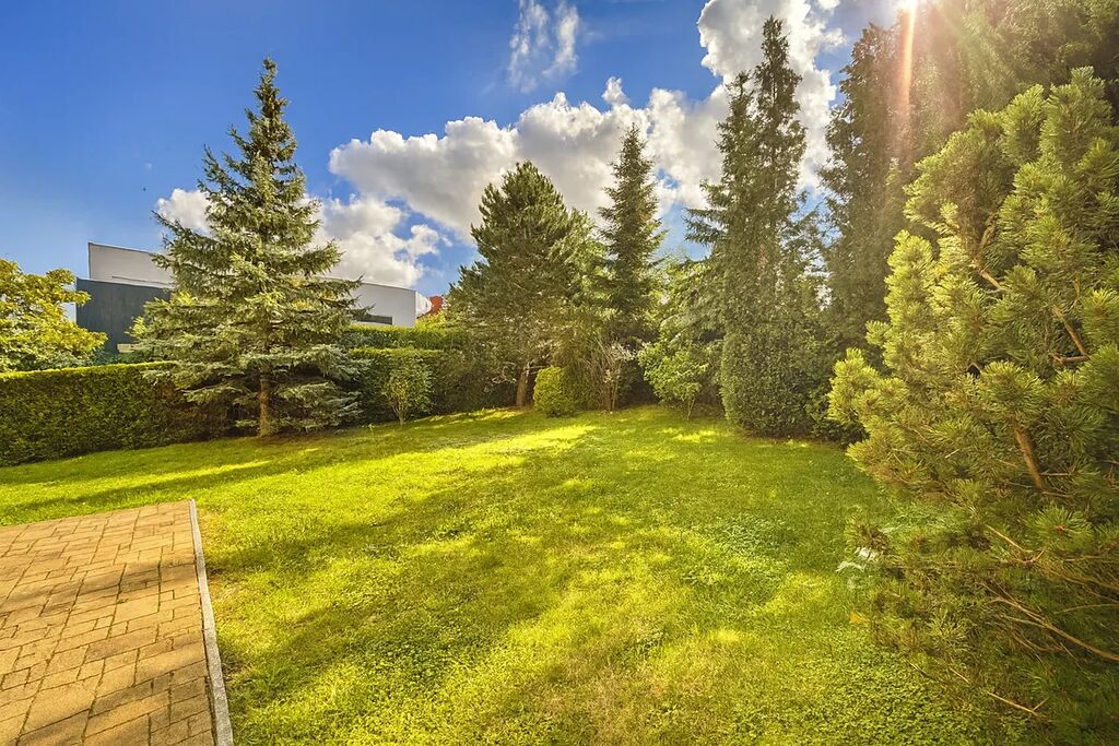 Dům nabízí celkovou užitnou plochu 316 m² a je situován na pozemku o rozloze 522 m². Vstupní podlaží tvoří prostorný obývací pokoj s přímým vstupem na terasu a udržovanou zahradu, samostatná kuchyně a velkorysá koupelna se sprchovým koutem, dvěma umyvadly a oddělenou toaletou. V prvním patře se nacházejí tři ložnice, z nichž dvě disponují vlastním balkonem. Komfort zajišťují dvě koupelny – jedna se samostatnou toaletou a druhá s whirlpool vanou a dvěma umyvadly. V podkroví jsou další dvě ložnice a koupelna s vanou. Suterén domu nabízí plnohodnotné zázemí v podobě garáže pro dvě vozidla, technické místnosti, skladu a multifunkčního pokoje, který lze využít například jako fitness nebo hernu, s vlastní koupelnou a WC. Další dvě parkovací místa jsou k dispozici na pozemku před domem.