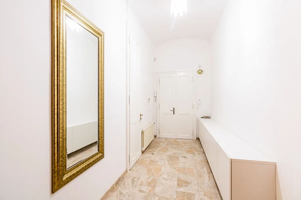 Byt prošel kompletní rekonstrukcí, při které byl kladen důraz na zachování původního šarmu i maximální komfort moderního bydlení. Z prostorné vstupní haly se vstupuje do světlého obývacího pokoje s kuchyňským koutem, dále do samostatné ložnice vybavené vestavěnými skříněmi a do luxusní koupelny s vanou a sprchovým koutem. Vše je zpracováno ve vysokém standardu, s důrazem na detail i funkčnost.
