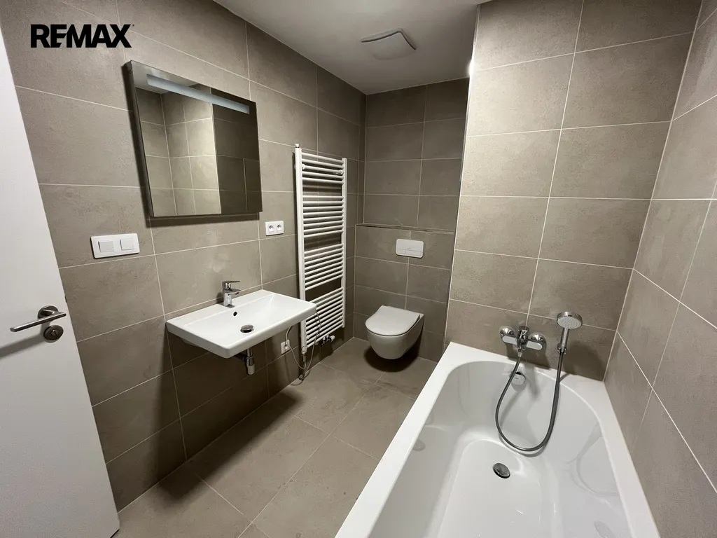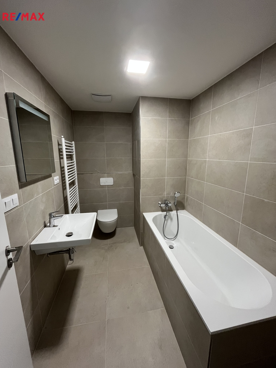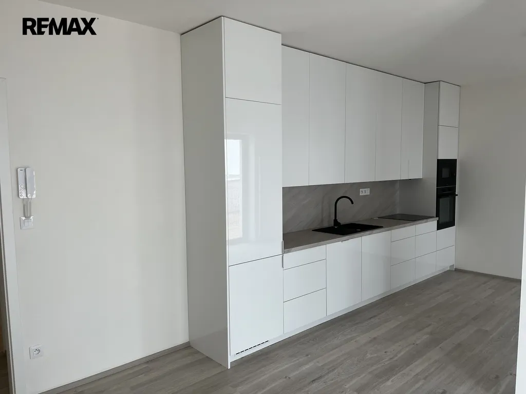 prostorný obývací pokoj s kuchyňským koutem, který je již vybaven moderní kuchyňskou linkou včetně spotřebičů. Ložnice se vstupem do samostatné šatny. Koupelna s vanou, umyvadle a wc značky Villeroy & Boch.