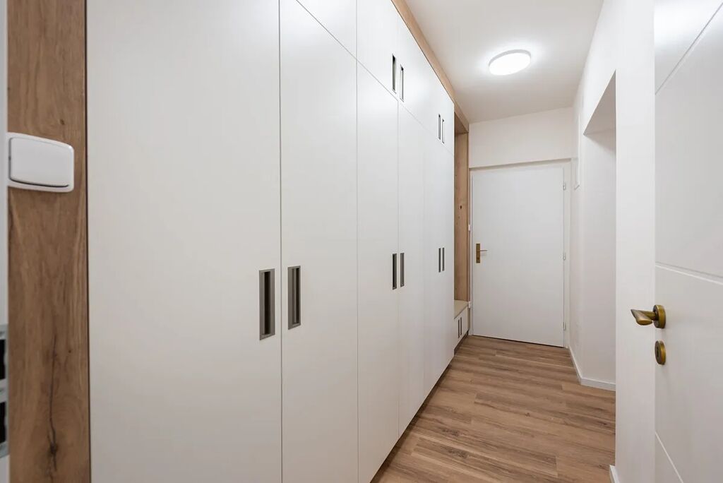 Už od vstupu je znát, že byt je navržený tak, aby se v něm pohodlně žilo každý den. Velká okna vnášejí do prostoru spoustu přirozeného světla a rekuperace zajišťuje stálý přísun čerstvého vzduchu bez nutnosti častého větrání.