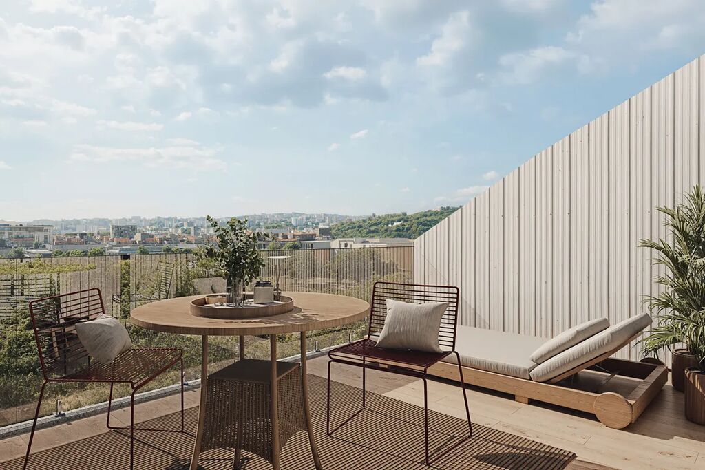V bytě a celém domě budou okna z hliníkových profilů s izolačním trojsklem. Byty budou mít rekuperaci a přípravu na klimatizaci. Na podlahách budou kvalitní plovoucí podlahy nebo dlažba, která bude i na balkonech a terasách. Dokončení stavby a předání bytů je plánováno na červen 2027.