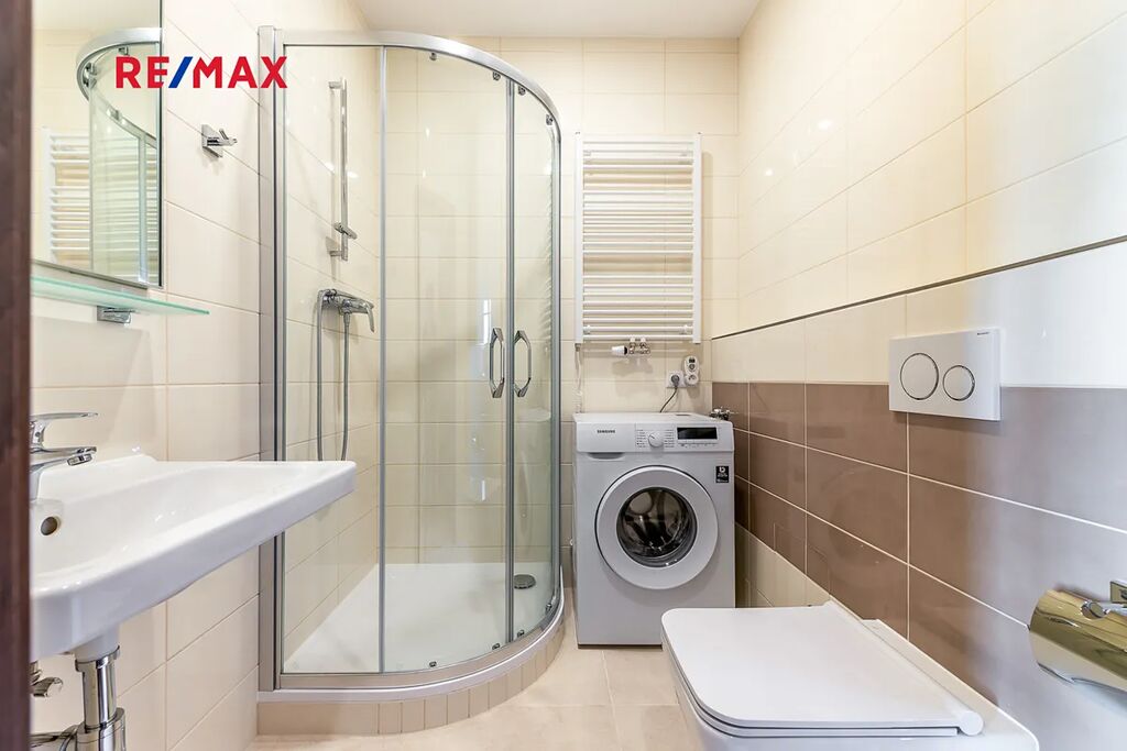 Interiér tvoří kvalitní laminátové podlahy, moderní kuchyňská linka a koupelna se sprchovým koutem. Dům po rekonstrukci působí elegantně a čistě, s výtahem a bezpečným vstupem. K bytu pátří sklep v 1PP.