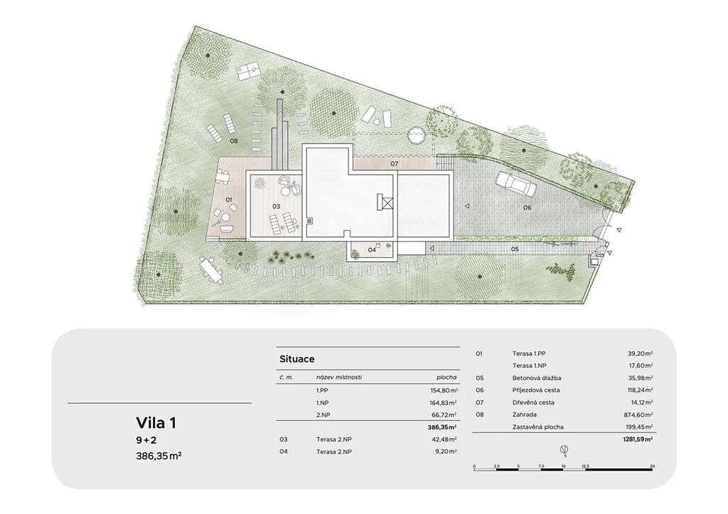 Exkluzivní poslední vila k prodeji v prestižním projektu Na Hvězdárně. Velkoryse navržená nová vila se zahradou, vířivkou, saunou a nerezovým bazénem je součástí špičkového projektu Na Hvězdárně, jehož exkluzivitu umocňuje výjimečná lokalita v oblíbené pražské čtvrti Velká Chuchle. Tato nadčasová vila o jednom podzemním a dvou nadzemních podlažích s dispozicí 7+kk je architektonickým skvostem. Unikátně zasazená do členité zahrady nabízí dokonalé soukromí, velkorysé prostory a maximální kvalitu všech použitých prvků a materiálů. Vila je dokončená ve stavu shell&core. Dokončení nezahrnuje interiérové dveře, podlahy, vybavení koupelen a dřevěné prvky. Součástí vily je prostorná garáž, terasy s celkovou plochou 98 m2, nerezový venkovní bazén a vířivka. Obytná část prvního podzemního podlaží je propojena s garáží a tvoří ji ateliér s kuchyňským koutem a vstupem na terasu, ložnice rovnež propojena s terasou a en-suite koupelnou, šatna, dvě komory, samostatná toaleta a chodba se schodištěm. Na vstupní úrovni se nachází otevřený prostorný obývací prostor s kuchyní, jídelním prostorem a terasou s nerezovým bazénem Inox, dále 2 ložnice, koupelna, toaleta, technická místnost, zádveří a chodba se schodištěm. Schodiště dále pokračuje do druhého podlaží, které tvoří hlavní ložnice s šatnou a terasou vybavenou vířivkou Villeroy&Boch, koupelna, dětská ložnice s druhou koupelnou a chodba. Tento jedinečný dům se nachází v klidné pražské části Velká Chuchle. Klid a soukromí se zde kombinuje s výbornou dostupností centra města autem, městskou hromadnou dopravou i vlakem ze stanice Praha-Velká Chuchle. Okolí disponuje plnou občanskou vybaveností, nachází se zde mateřská i základní škola, zdravotnická zařízení, pošta, úřady a řada obchodů a restaurací. V okolí jsou široké možnosti pro sportovní a volnočasové aktivity. Vila leží nad chuchelským závodištěm, nedaleko je pražský Ski Park a v okolí se rozprostírá řada přírodních rezervací s turistickými stezkami, ideálními pro procházky nebo cyklistiku.