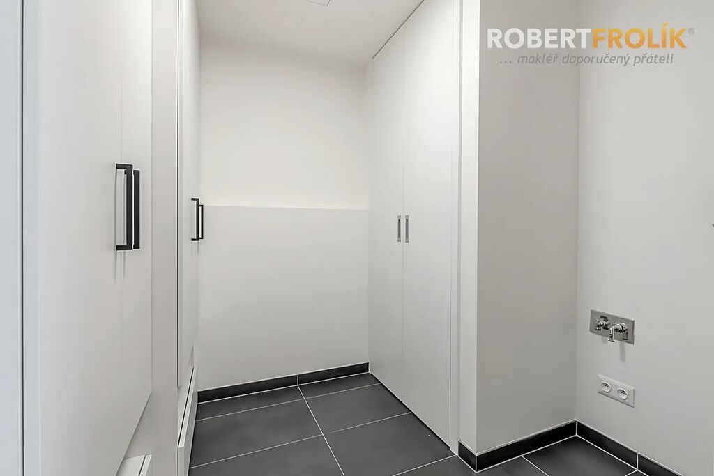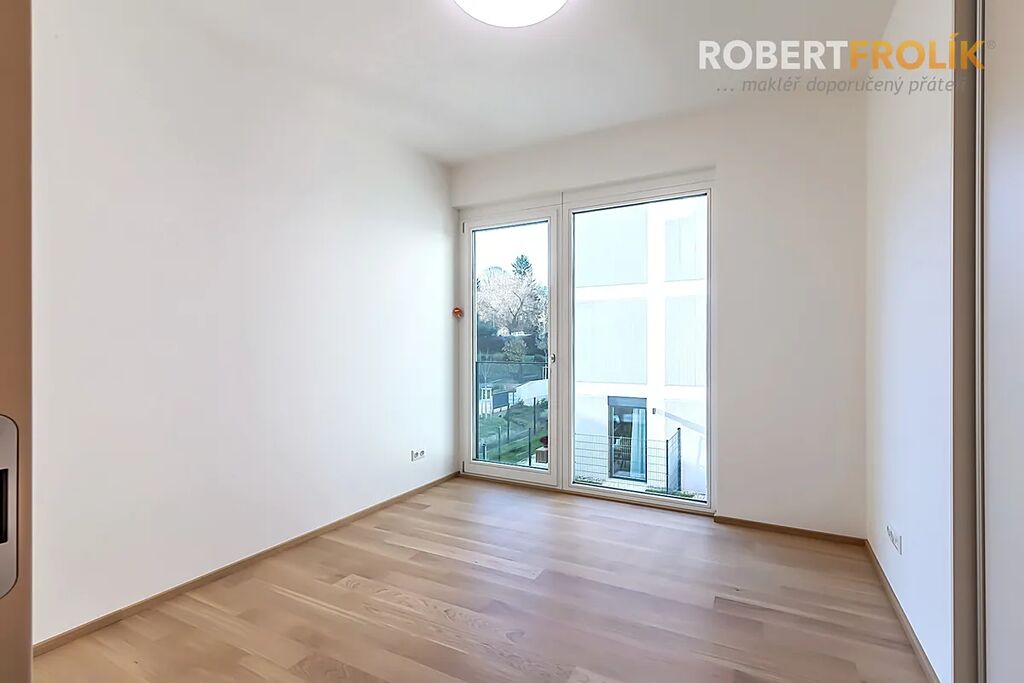 V bytě mimo jiné najdete: podlahové vytápění, rekuperaci, velká okna s trojskly, elektrické předokenní žaluzie a pod. V suterénu domu budete mít v ceně nájmu garážové stání a sklep. V domě je i společná kolárna a kočárkárna.