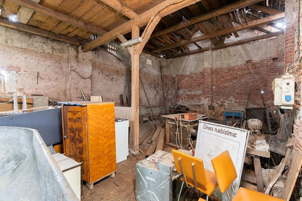 Na pozemku se kromě hlavní obytné části nachází také prostorná stodola, dílna a původní chlév, který může sloužit jako sklad, technické zázemí nebo být přestavěn na další funkční prostor.