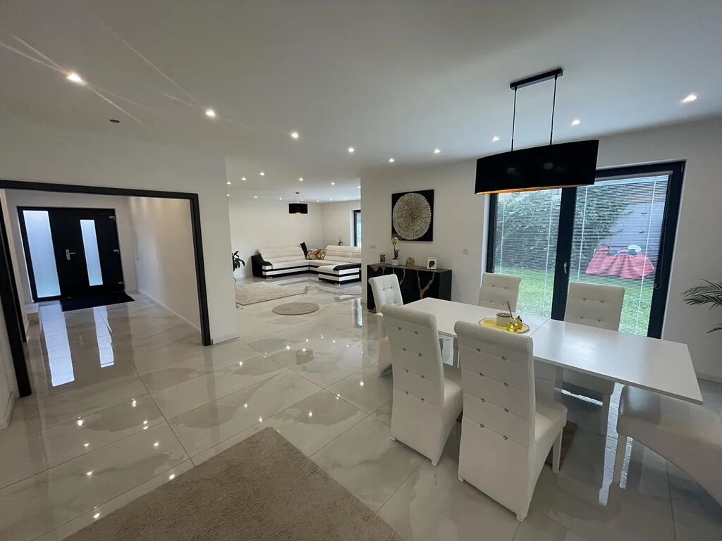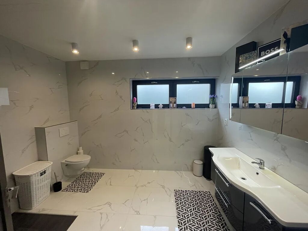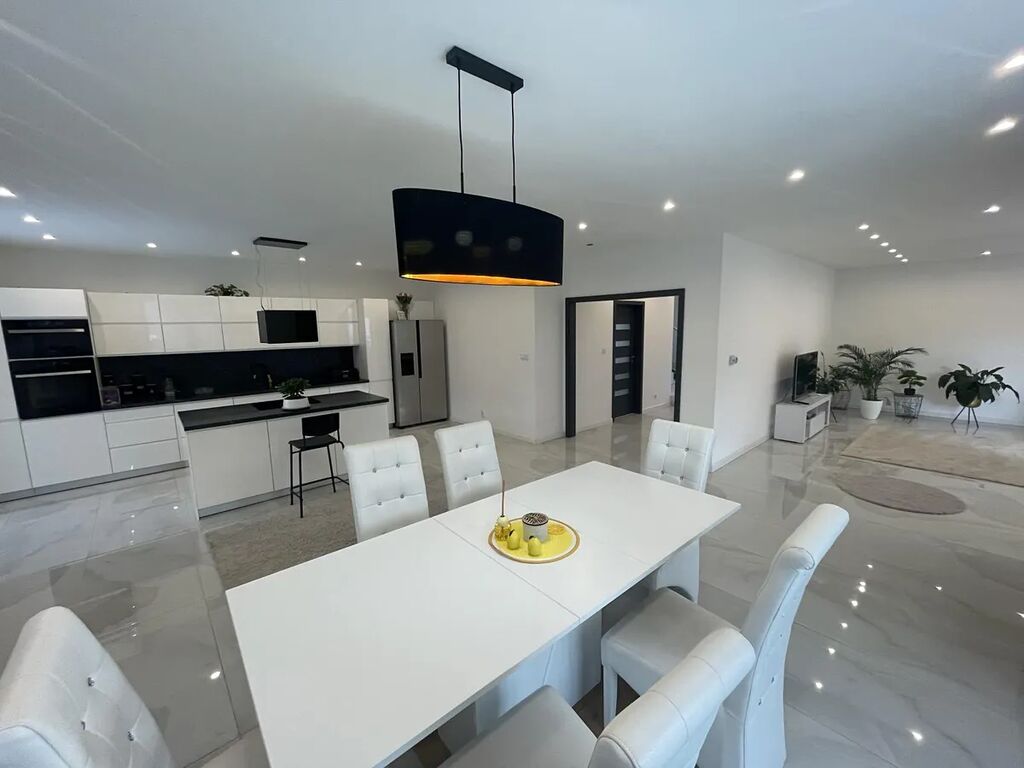 Nabízíme k prodeji luxusní rodinný dům v Jenči u Prahy. Dvoupodlažní moderní dům o užitné ploše 192 m2 a dispozičním řešení 4+1 se nachází v klidném zákoutí uprostřed obce Jeneč. V přízemí domu je prostorný a světlý obývací pokoj propojený s velkorysou kuchyní a jídelnou, dále prostorná vstupní hala se schodištěm a koupelna. V patře domu v klidové zóně jsou 3 útulné ložnice (20, 24 a 27 m2), šatna, koupelna a technická místnost s dalším wc. Dům je novostavba s energetickou náročností kategorie C. Vystavěn je z Porothermu, střešní krytina pálená taška Tondach. Vytápění plynovým kombinovaným kondenzačním kotlem, v přízemí podlahové topení, v patře otopná tělesa. Jako podlahová krytina byla použita luxusní velkoformátová dlažba, v ložnicích je kvalitní vinyl. Technické řešení domu umožňuje i dvougenerační bydlení, tj. rozdělení na 2 samostatné bytové jednotky. V současné době není dům ještě zkolaudován, a to z důvodu absence fasády. Je ale již užíván k bydlení na základě Rozhodnutí o předčasném užívání. Zhotovení zateplené fasády je zahrnuto v ceně domu, nový majitel si může vybrat barvu i provedení. Obec Jeneč je plně vybavená moderní obec v těsné blízkosti Prahy (pár minut autem i PIDem).