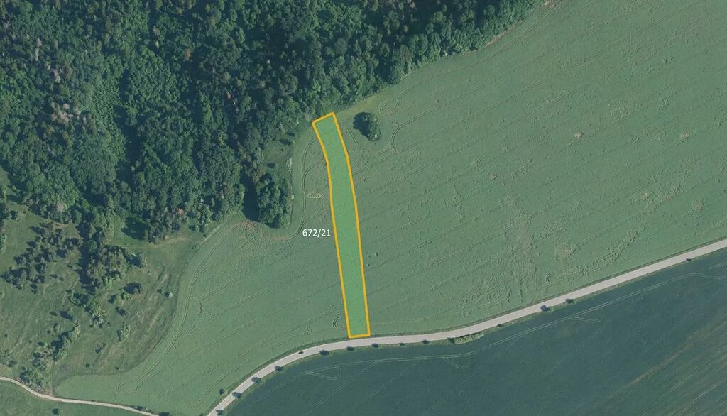 Jedná se o parcelu č. 672/21 o výměře 4 986 m², vedenou jako orná půda. Pozemek leží v rovinatém terénu a přímo u cesty.