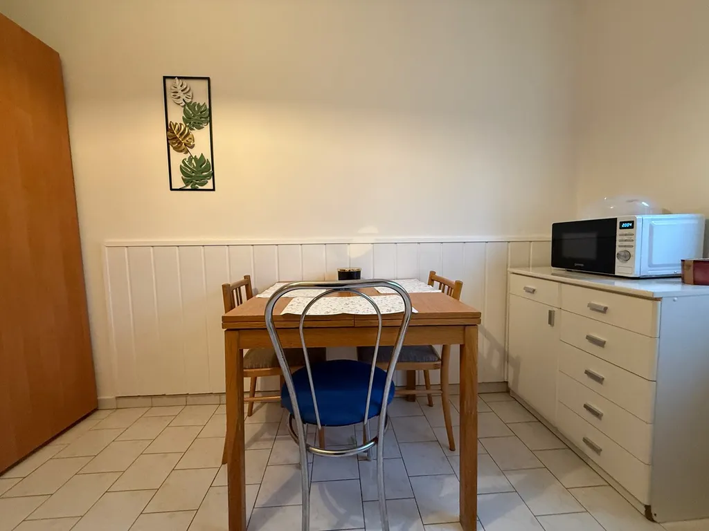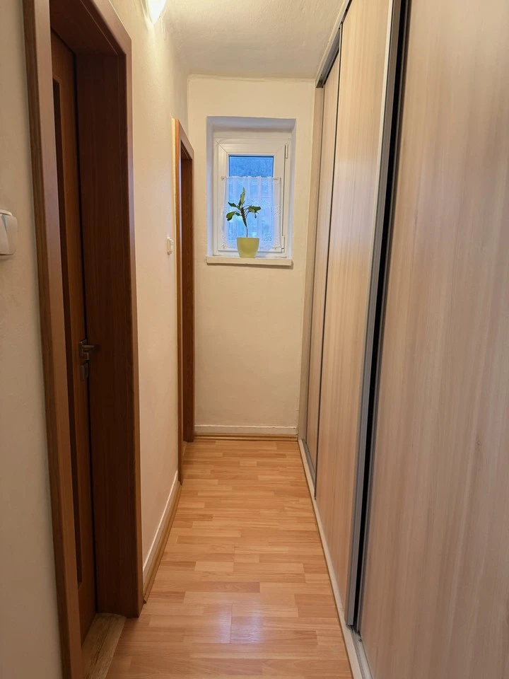 Byt je teplý v klidném domě s možností využití zahrady za domem a parkování na přilehlém parkovišti přes ulici.
