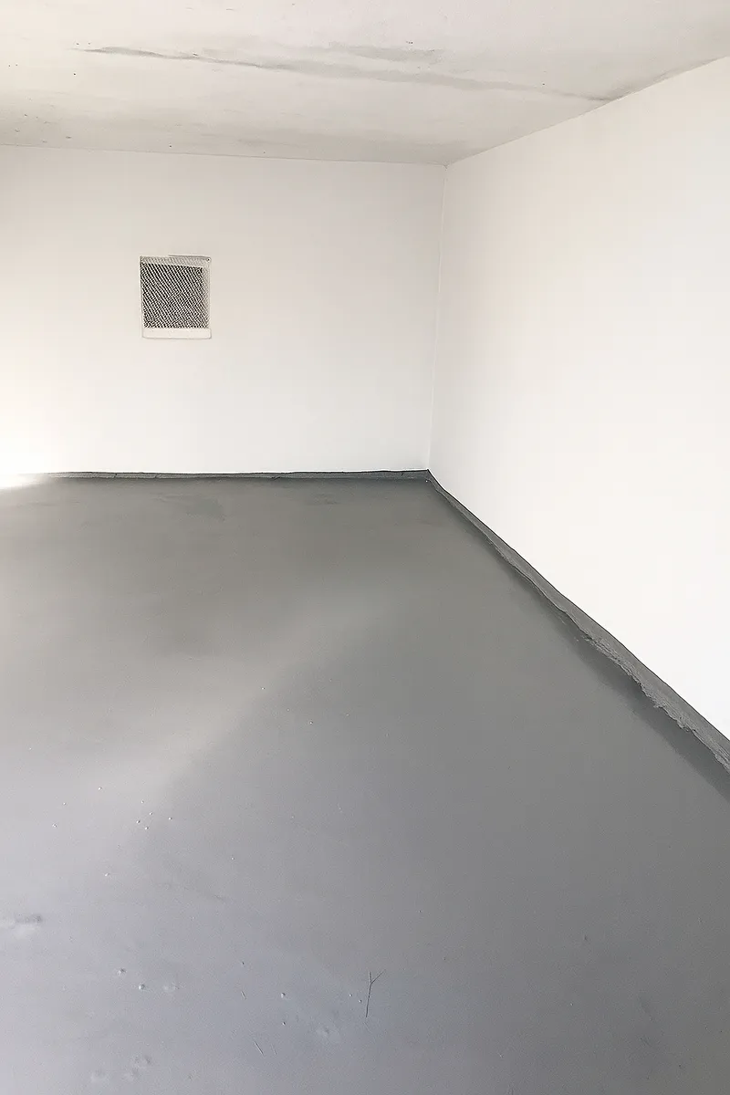 V garáži byly při rekonstrukci opraveny vnitřní i vnější omítky, podlaha, střecha, oplechování a garáž byla vymalovaná. Na střechu byla použita izolace IPA. Vrata byla zbroušena a natřena.
