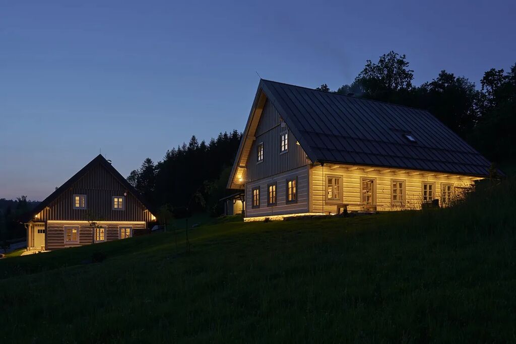 Dvě stylové, nově postavené roubené dřevostavby na jednom pozemku o výměře 2 369 m², o užitné ploše 235 m² a 238 m², kombinují horský šarm s moderním komfortem a designem. Projekt je kompletně připraven k provozu – komerčně i pro soukromé využití.