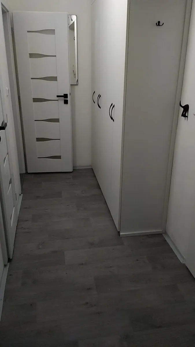 Byt je vybavený - k dispozici je kuchyňská linka s vestavenymi spotrebici, digestoří, troubou a lednicí. V pokoji najdete sedačku, konferenční stůl a manzelskou postel. Prostorná šatna je vybavena policovými regály.