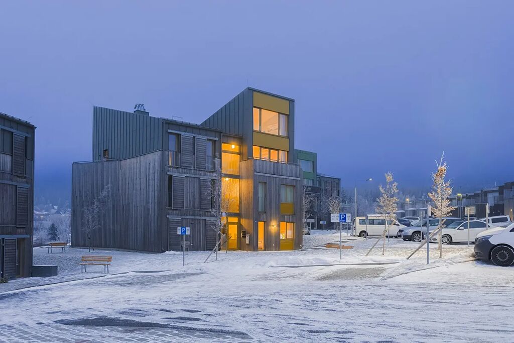 Projekt Klínovecké Louky navazuje na stávající komplex moderních domů v Loučné pod Klínovcem.