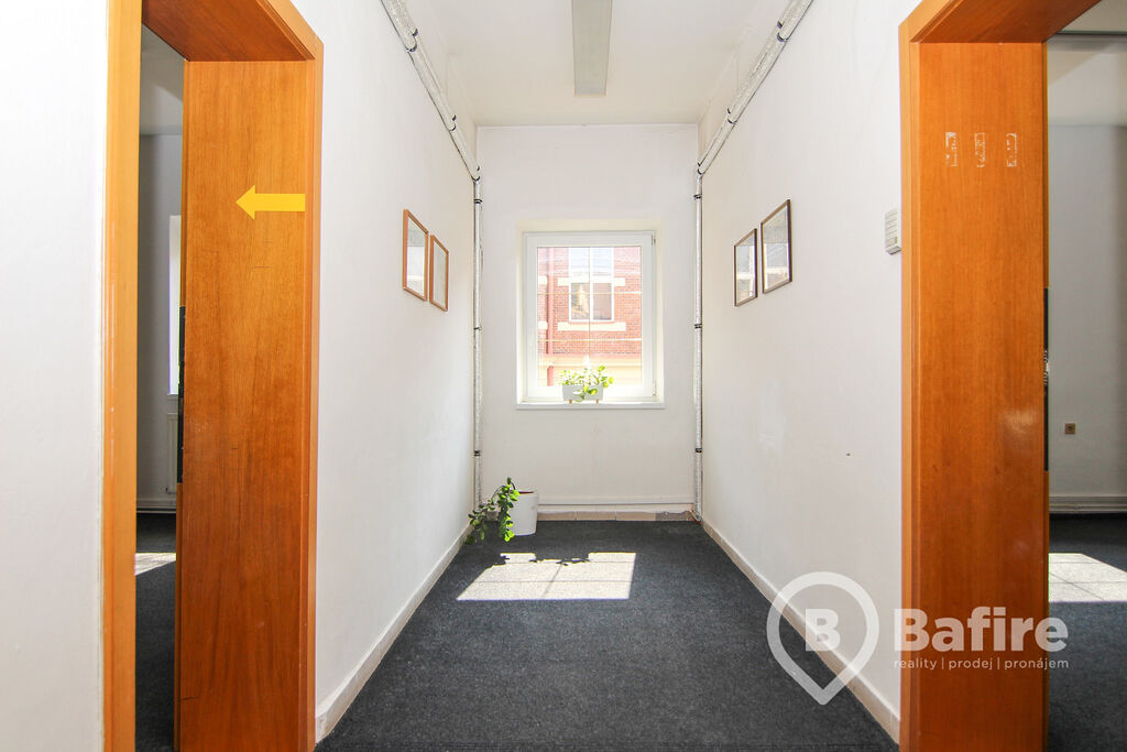 Samotná kancelářská budova je ve velmi dobrém stavu, ale je třeba vzít v úvahu, že není vybavena výtahem, a není tedy bezbariérová. Vzhledem k tomu, že kancelářské prostory nejsou vybavené, poskytují příležitost na individuální přizpůsobení dle Vašich představ a potřeb. V kancelářské jednotce došlo ke kompletní výměně podlahové krytiny - koberce, renovaci kuchyňského koutu a rovněž také toalety.