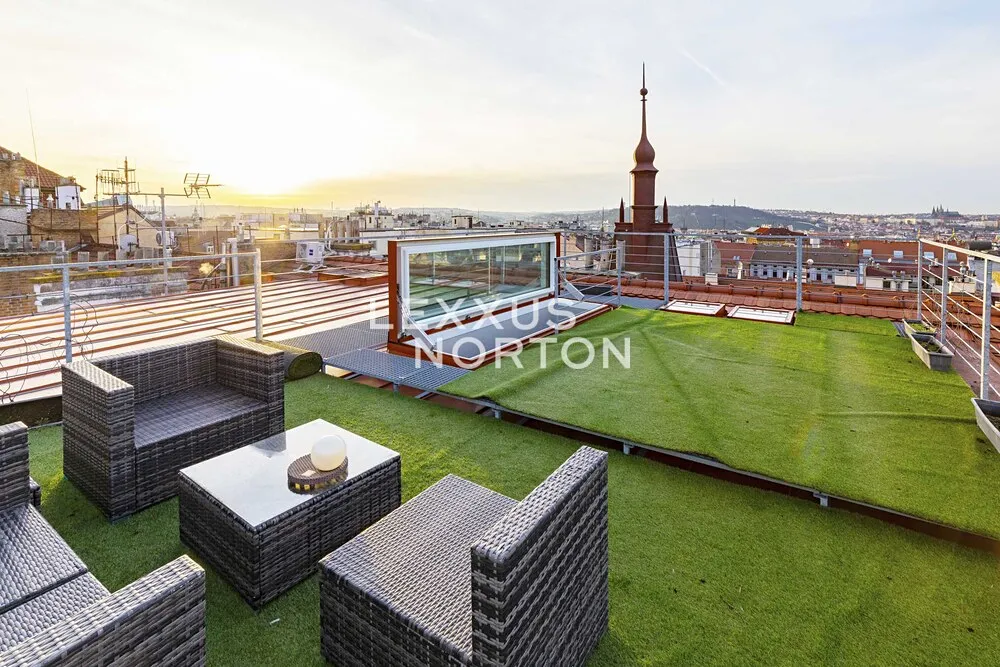Byt je umístěn v posledním podlaží kompletně zrekonstruované novorenesanční budovy s výtahem, pouhých pár kroků od Náměstí Míru a Vinohradského divadla. Hlavní dominantou je velkorysá střešní terasa s dechberoucím výhledem na celou metropoli. Druhá, klidová terasa do vnitrobloku, která je po celé délce bytové jednotky.