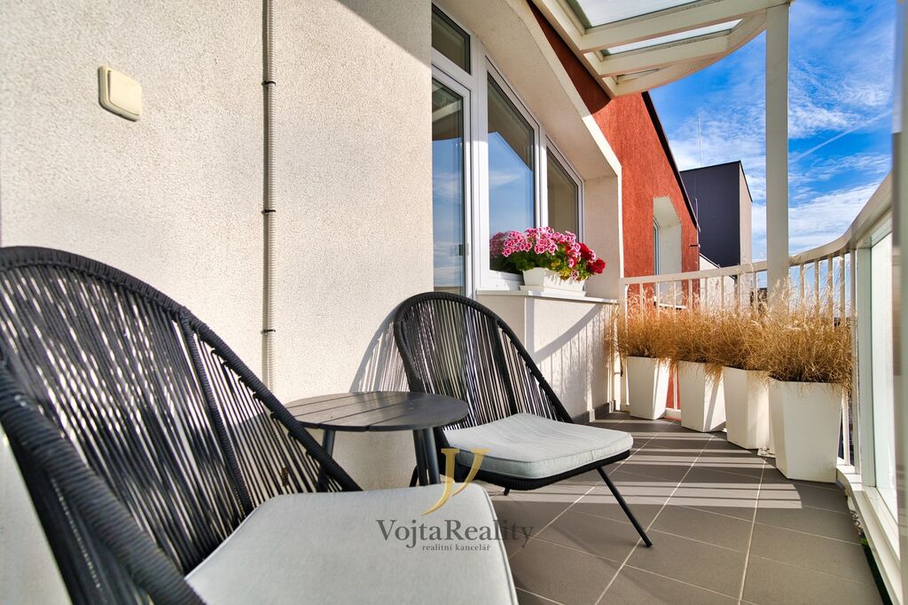 Byt o výměře 84 m² s balkonem o velikosti 8 m² (který je dle prohlášení vlastníka součástí bytové jednotky) a sklepními prostory se nachází v posledním patře bytového domu, který prošel v roce 2021 kompletní revitalizací.