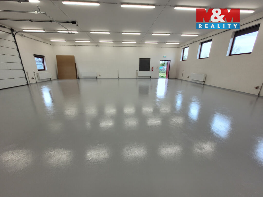 Nabízíme k pronájmu výrobní halu o výměře 323 m2 na pozemku 846 m2. Hala je kolaudována jako truhlářská dílna, lze rekolaudovat na autoservis, nebo klempířskou dílnu, opravnu strojů atd. Dispozice: hlavní hala, kancelář, kuchyně + zázemí, 2 x WC, 1 x sprcha, příruční sklad, technická místnost. Vrata: 2 x 3,0 m x 3,7 m. Světlá výška haly: 4,1 m. Světlá výška zázemí: 2,4 m. Strop zázemí je nosný i pro možné skladování. Vytápění: plynový kondenzační kotel s rozvodem do hlavní haly. Elektro: 230W, 380 W (příkon až 40A). K dispozici od 1.12.2025 nebo podle domluvy. Dispozice haly lze přizpůsobit podle záměru využití.