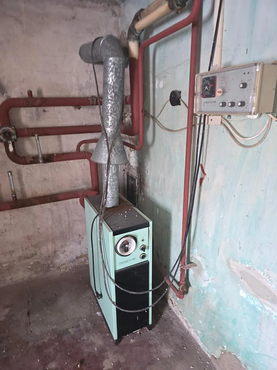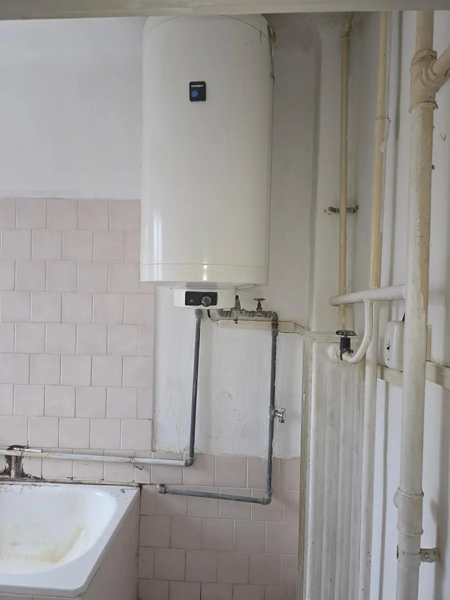 Vytápění plynovým kotlem, ohřev vody el. bojlerem.