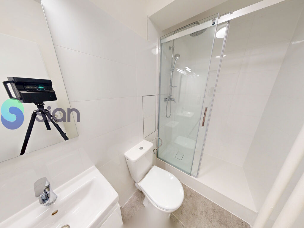 V koupelně se nachází sprchový kout, umyvadlo s úložnou skříňkou a toaleta. Podlahy jsou nově pokryty kvalitním PVC. Do bytu budou ještě dodány žaluzie.