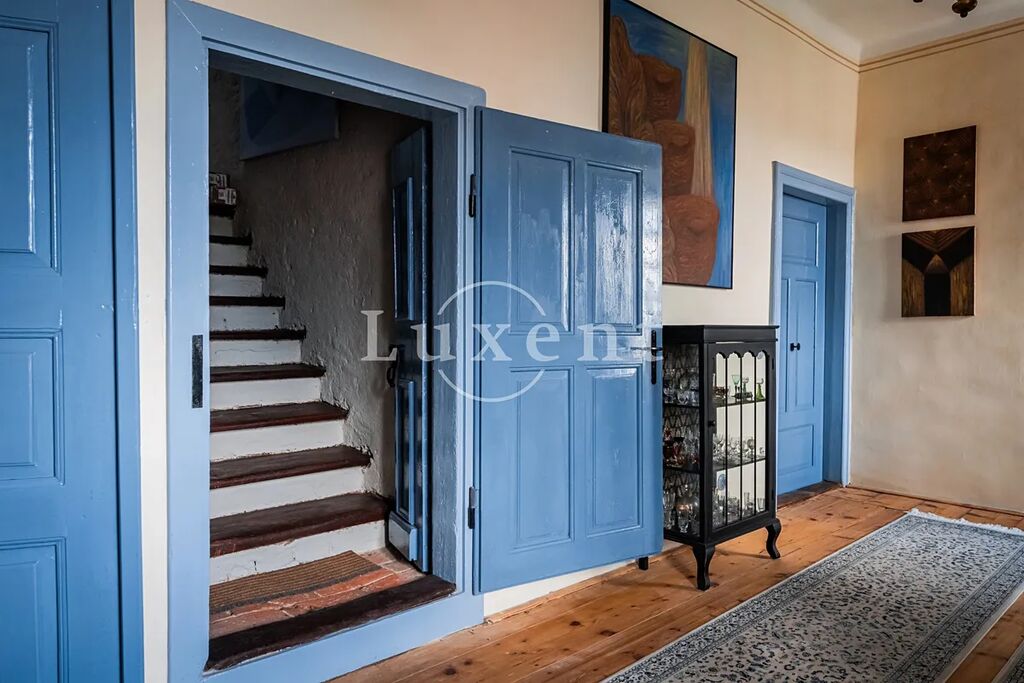 Na pomezí pohádkového snu a moderní elegance nabízíme k prodeji výjimečný renesanční zámeček situovaný nedaleko Českých Budějovic v jižních Čechách. Prodej zahrnuje historickou zámeckou budovu s pěti ložnicemi a stylově zařízenými interiéry, dva butikové apartmány v samostatné budově, venkovní vyhřívaný bazén s protiproudem, soukromý rybník obklopený parkem a vodním domkem ideálním pro letní ubytování. Součástí areálu je také zámecká stodola s kapacitou až 70 míst, která byla precizně přizpůsobena pro pořádání různorodých akcí, jako jsou oslavy, vernisáže, přednášky či koncerty. Dále zde naleznete samostatnou garáž pro čtyři vozy, francouzskou bylinkovou a květinovou zahradu s okrasnými jezírky, romantické pergolové rozárium a nádvoří zdobené ústřední uměleckou plastikou.