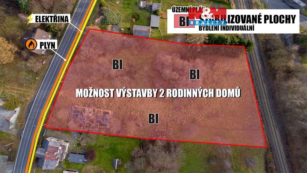 Dle územního plánu je veden v plochách „BI“ – bydlení individuální, což umožňuje výstavbu rodinných domů. Na pozemku v minulosti stály dva domy, přičemž zbytky jednoho z nich jsou dodnes na pozemku přítomné. Lze tedy na pozemku postavit 1 - 2 rodinné domy.