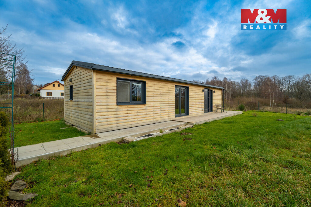 Součástí nabídky je také možnost zakoupení pozemku včetně mobilního domu, který může sloužit jako dočasné či rekreační bydlení během výstavby.