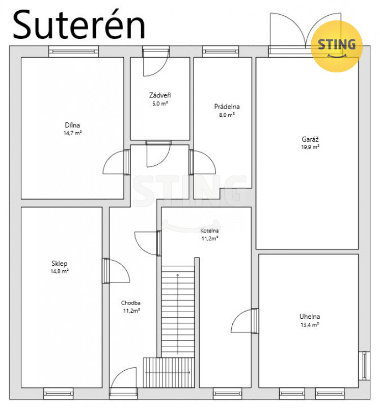 V suterénu se nachází garáž, prádelna, technické místnosti a přímý vstup na zahradu.