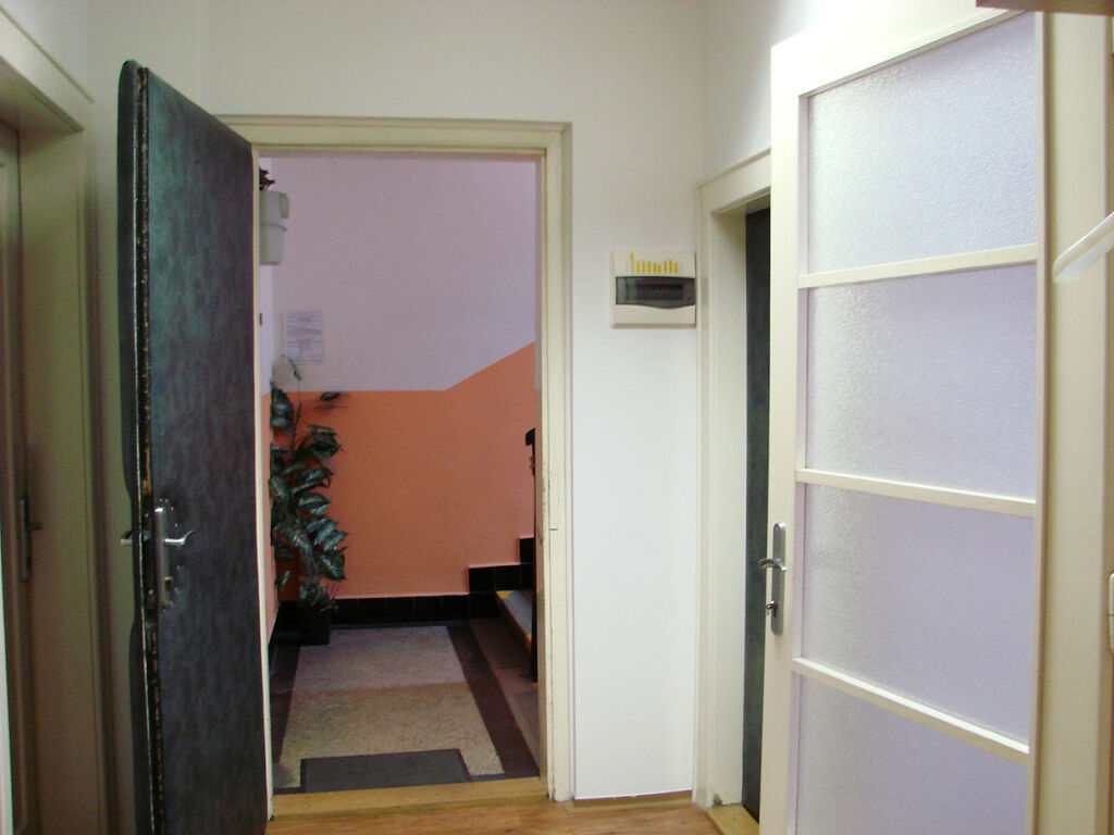 Jedná se o celé 4. NP (74 m²) v cihlovém domě bez výtahu, vytápěno plynovým kotlem. K dispozici místnost s kuchyňským koutem (16,2 m²), komorou/skladem (1,4 m²) a vyzděným balkonem/skladem (3 m²). Z prostorné předsíně s odkládací stěnou a vstupem do koupelny se sprchovým koutem (4,1 m²) a samostatného WC (1,4 m²) se dostaneme do dalších dvou světlých místností (každá 21,2 m²) s okny orientovanými na jih.