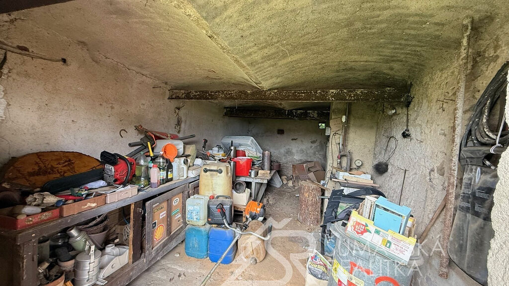 Na obytnou část navazuje garáž s umístěným starším, avšak funkčním kotlem, a také prostorná stodola, která nabízí další úložné či dílenské zázemí.