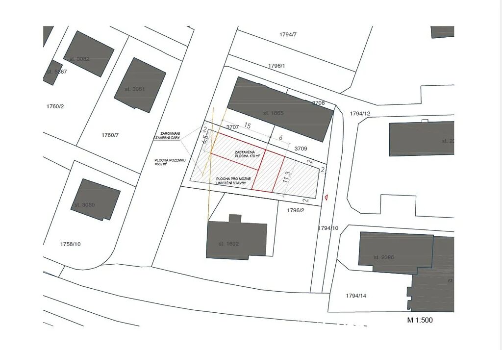 Pozemek je vymezen schváleným geometrickým plánem, ale není zatím zapsán v katastru nemovitostí.