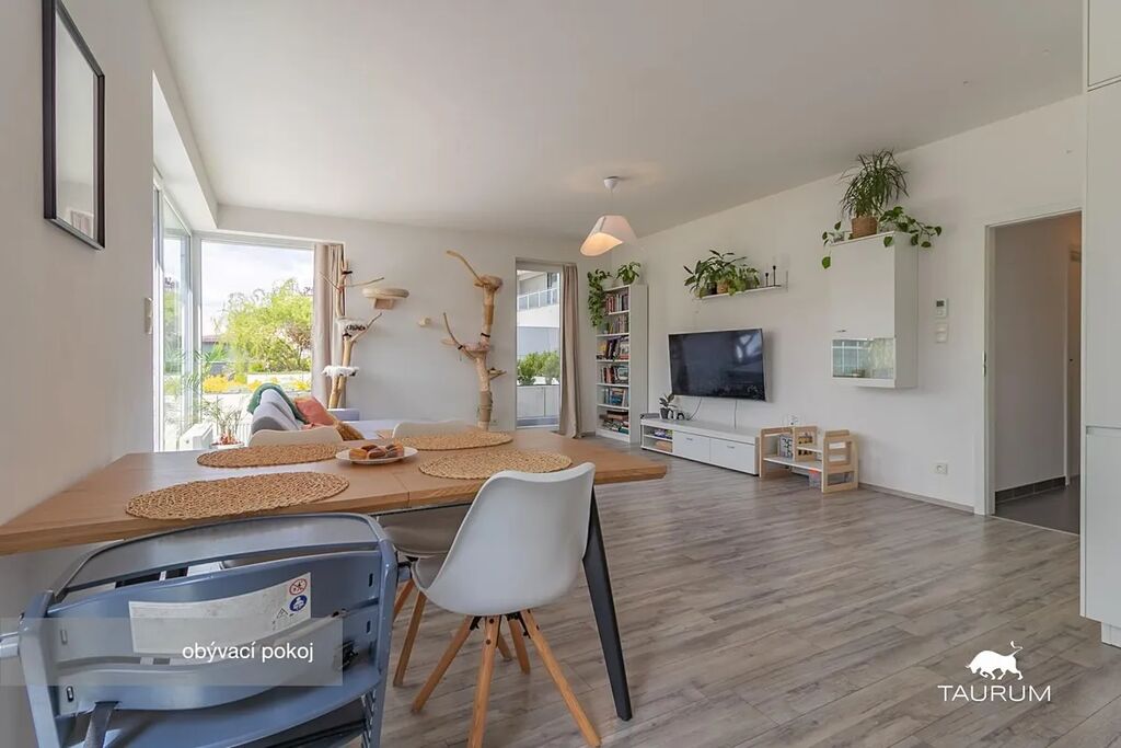 Byt se nachází v přízemí nového bytového komplexu doslova pár metrů od Chodského náměstí. Velkou předností je opravdu velká terasa (67 m2), která je přístupná z každé místnosti. Oceníte i garážové stání, kde si dveře rozhodně neodřete. Je totiž širší než standardní garážová místa.
