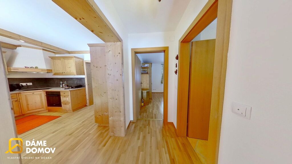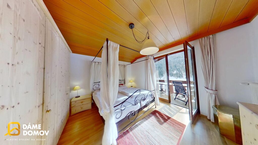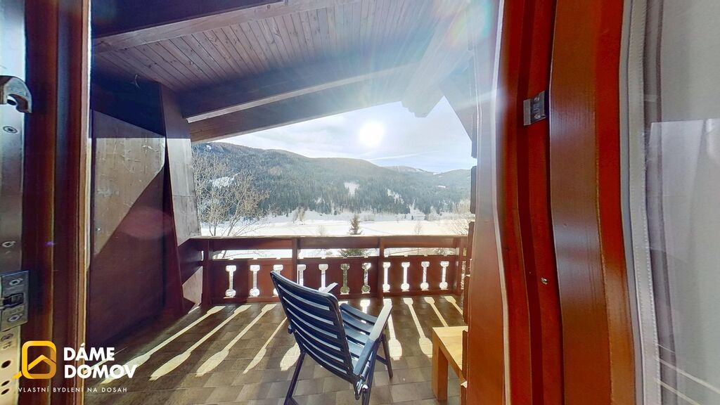 Apartmán o podlahové ploše 77 m² se nachází v klidné části obce a nabízí krásný výhled na okolní hory. Součástí je balkon o velikosti 11 m² – ideální místo pro ranní kávu či večerní posezení po dni na sjezdovkách. K apartmánu náleží podzemní garážové stání a jedno venkovní parkovací místo.