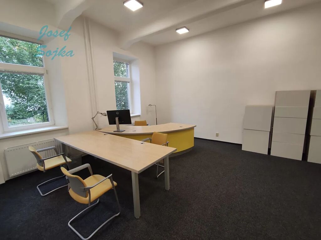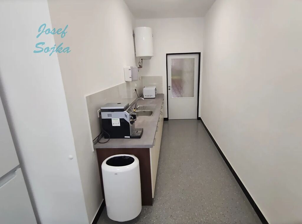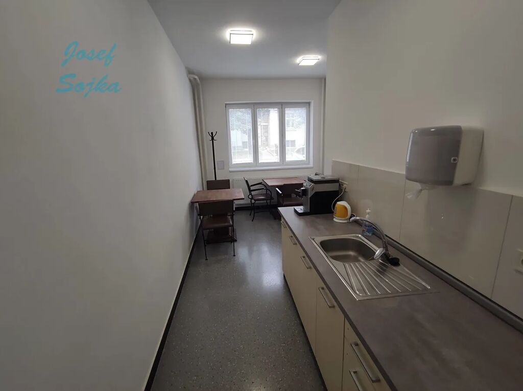Kancelář je vybavena nábytkem a kopírkou. Ve vestibulu budovy se nachází recepce, společná kuchyňka, toalety, ale také pánské a dámské sprchy. Kancelář je ihned k dispozici a v případě zájmu je možné pronajmout i vedlejší kancelář o výměře 30m2.