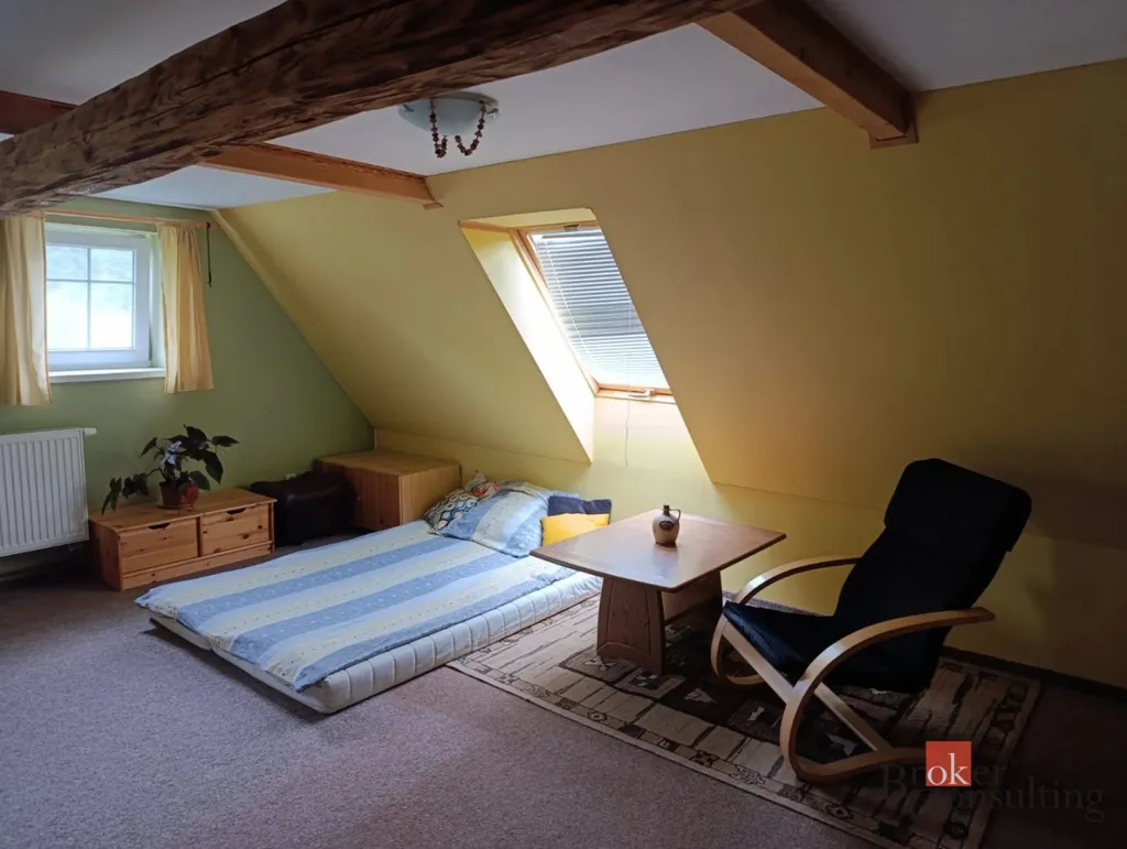 • V horním patře se nachází prostorná ložnice ideální pro odpočinek.