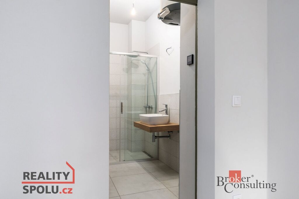 Součástí bytu je také koupelna se sprchovým koutem a samostatné WC.