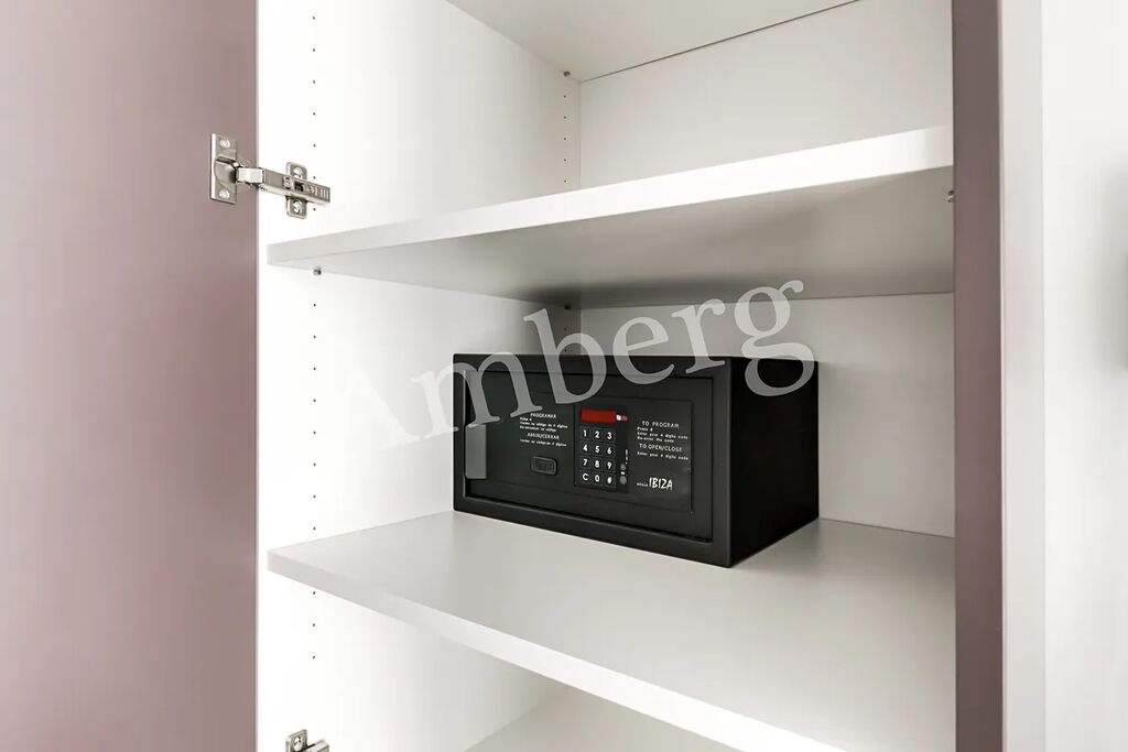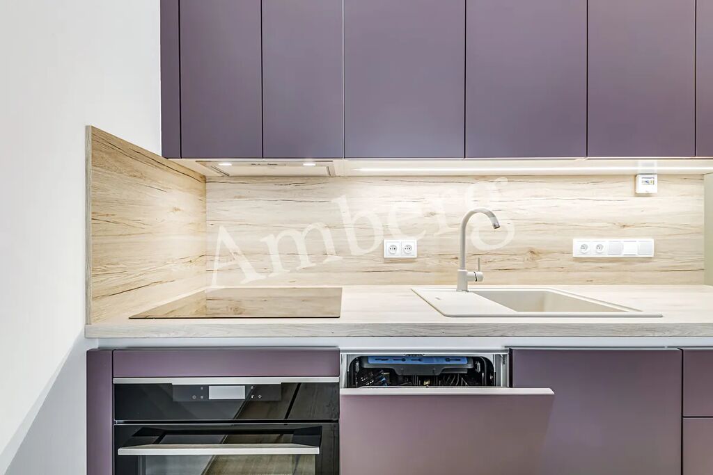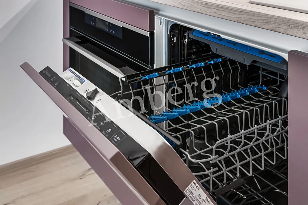 Byt je vkusně zařízen nábytkem na míru, včetně kuchyňské linky s myčkou a indukční varnou deskou, vestavěné skříňě s trezorem.