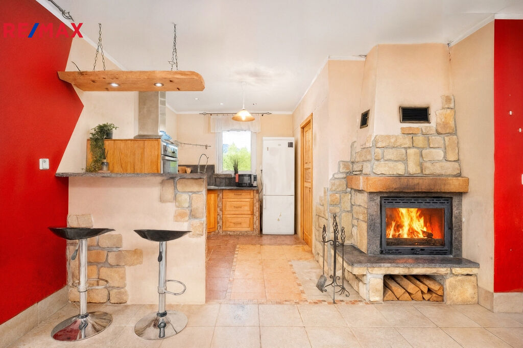 Interiér je řešen prakticky i útulně. Podlahové vytápění napojené na elektrokotel se stará o příjemnou teplotu v domě a atmosféru doplňuje krb. Dům má plastová okna, zateplení a díky tomu i nižší provozní náklady.