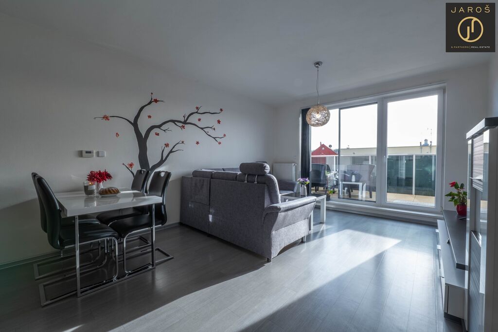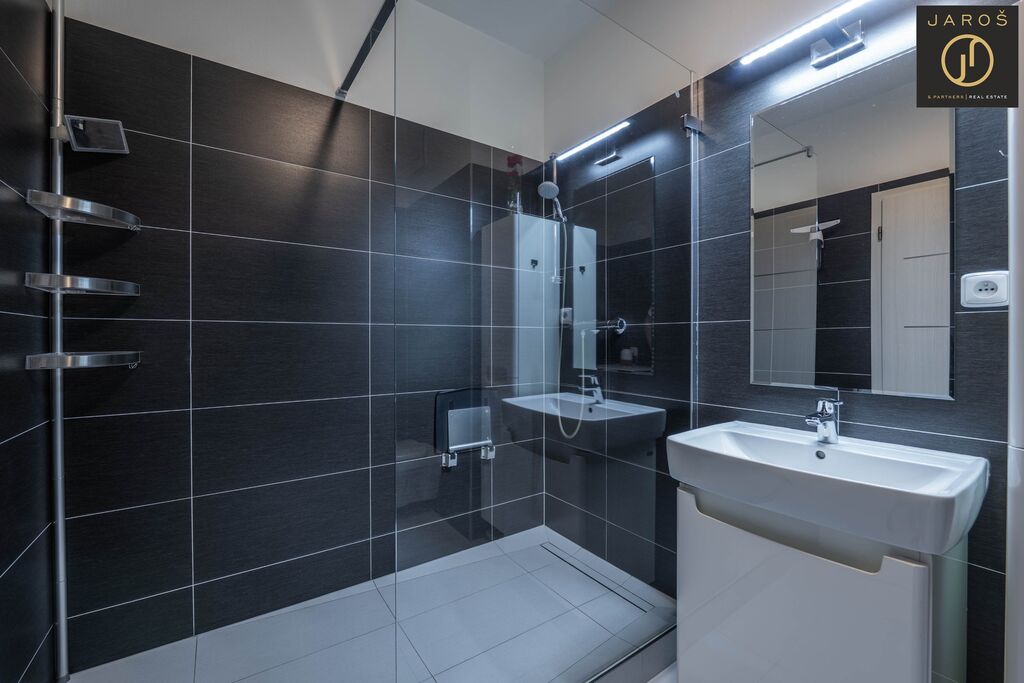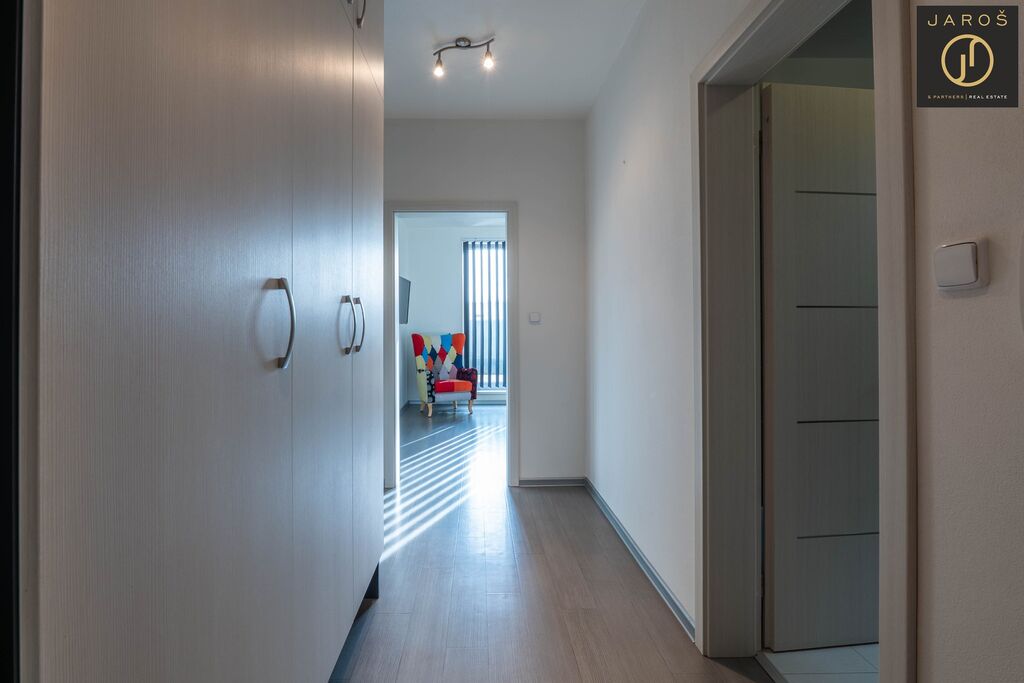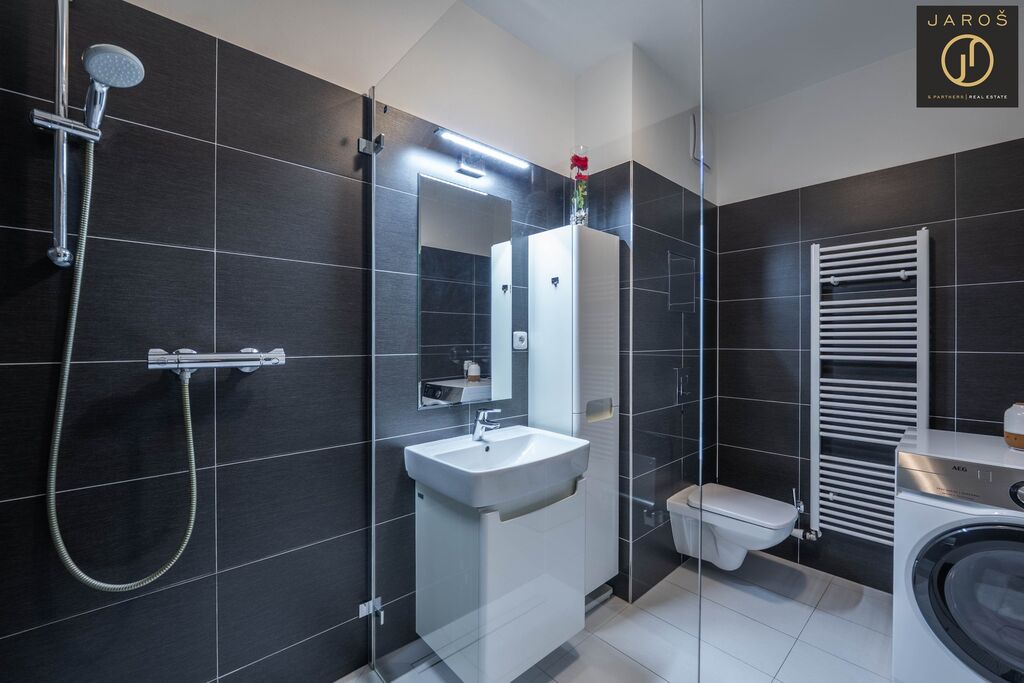 Exkluzivně Vám nabízíme k prodeji světlý byt 2kk s užitnou plochou 57,44 m2 + 16,68m2 terasa, který se nachází v ulici Zavadilka v Českých Budějovicích. Tento byt je součástí projektu Bytový dům U Boru II z roku 2015. Bytový dům je umístěn na okraji vilové čtvrti a v blízkosti lesů a rybníků, zároveň ale nedaleko občanské vybavenosti. Samotná bytová jednotka je situovaná ve 2.NP a skládá se ze vstupní chodby, ložnice, obývacího pokoje s kuchyňskou linkou a z koupelny se sprchovým koutem a toaletou. Největší předností bytu je terasa orientovaná na jihozápad, na kterou se vstupuje z obou pokojů. Na terase najdete také dvě manuální markýzy, které Vám při posezení na terase poskytnou stín, a soukromí je zajištěno orientací do vilové zástavby a tmavými fóliemi na zábradlích. Bytu vévodí moderní kuchyňská linka na míru, díky které již nejsou do bytu potřeba žádné větší investice. Do obývacího pokoje, který má 28m2, se mimo kuchyňské linky pohodlně vejde také jídelní stůl a sedací souprava. Dostatek úložných prostor v bytě je zajištěn vestavěnými skříněmi v ložnici a ve vstupní chodbě, navíc k bytu také náleží komora na patře (2,7m2). V domě je také místnost na uložení kol a kočárků.