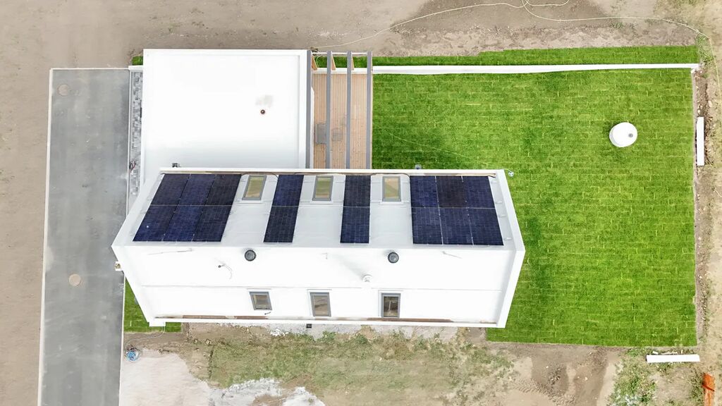 Dům je v podstatě k nastěhování – dokončený ve fázi Shell & Core, tedy plně funkční a připravený k individuálnímu dokončení interiéru dle vašich preferencí a stylu (finální podlahy, vnitřní dveře, koupelna, kuchyně…). My se ještě chystáme vysadit zelenou střechu.