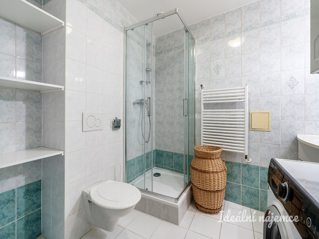 Byt je kompletně vybavený, takže se můžete pohodlně nastěhovat bez nutnosti dalšího zařizování. Kuchyň je vybavena lednicí s mrazákem, elektrickou troubou, mikrovlnnou troubou, sporákem a digestoří. V hlavní obytné místnosti najdete pohodlnou sedací soupravu, konferenční stolek, televizor a jídelní kout. Ložnice je zařízena manželskou postelí a dostatkem úložného prostoru. Koupelna nabízí sprchový kout, umyvadlo, koupelnovou skříňku, toaletu a pračku.