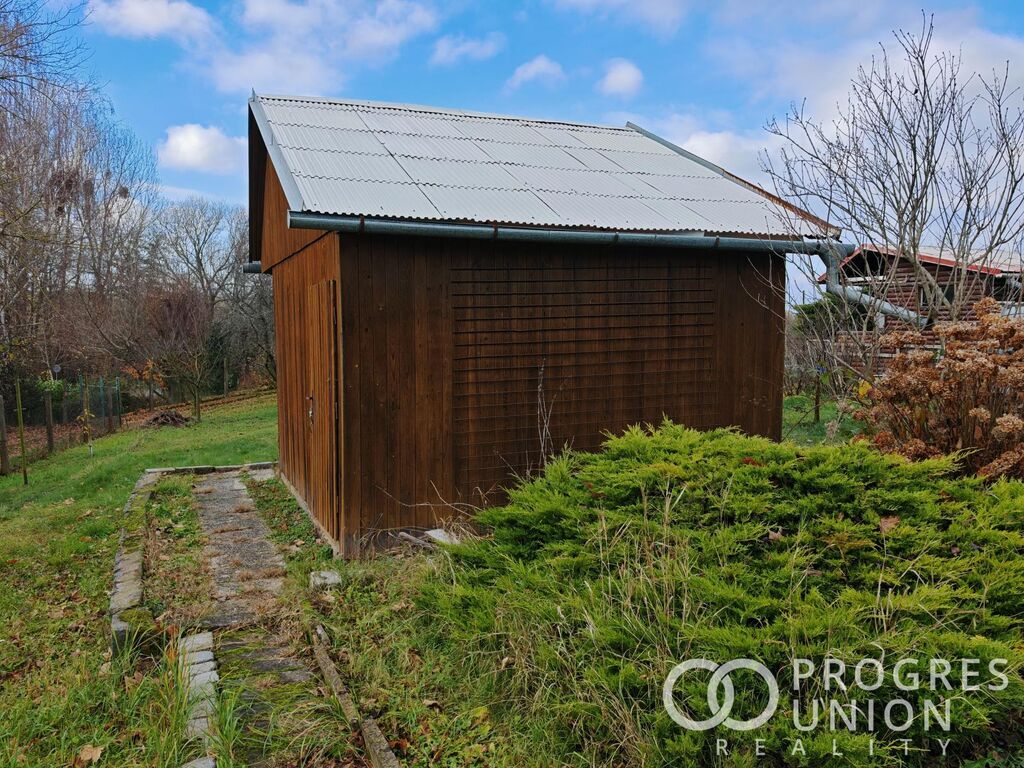 Prodej zahrady s chatkou na okraji Kroměříže, na pozemku o výměře 466m2 jsou osázené ovocné stromy(švestky, meruňky, višeň), ovocné a okrasné keře. Pod dřevěnou chatkou je vybudovaný poctivý sklep z žulových kostek, rozdělený zdí na dva sektory, ideální pro skladování ovoce a zeleniny. Připojeno na elektřinu 230/400V, možnost napojení na společnou studnu u pozemku. Umístění nemovitosti na začátku zahrádkářské kolonie.