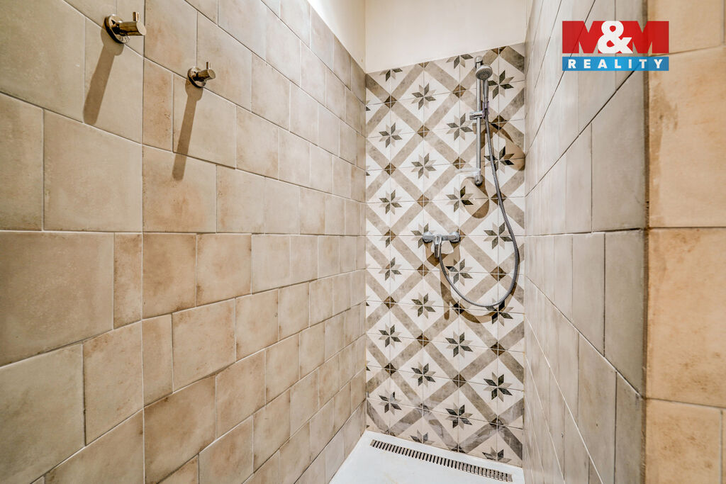 Interiér prošel kompletní rekonstrukcí s důrazem na kvalitní materiály a praktické řešení prostoru. Velká okna zajišťují dostatek světla, odhlučněné dveře přinášejí klid a vstupní hala poskytuje maximální soukromí. Dům je zabezpečen kamerovým systémem a oba vstupy k bytu mají čipový přístup.