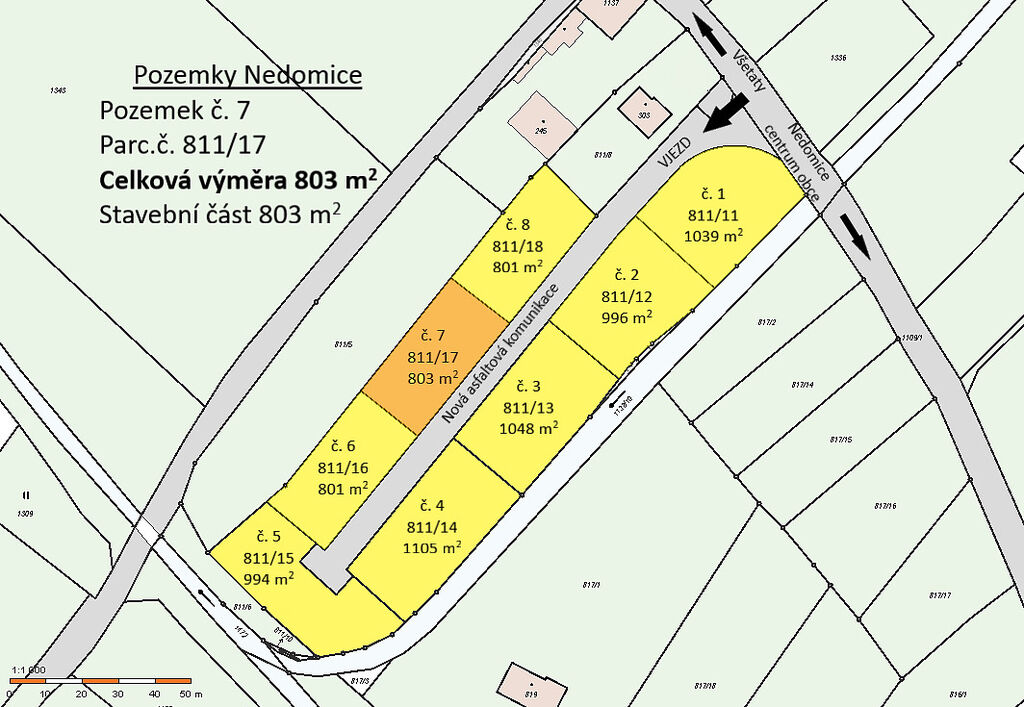 Prodej pozemku, Nedomice, 803 m2
