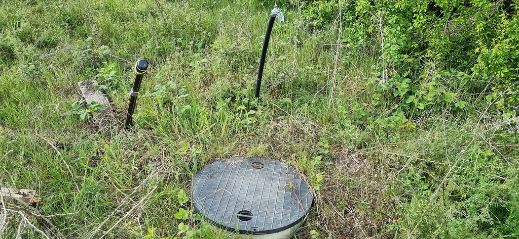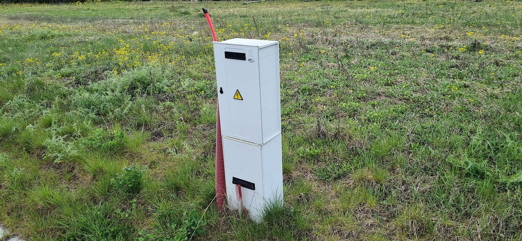 Přípojky: voda (ukončení v šachtě), kanalizace (tlaková, ukončeno zaslepením), elektřina (přípojkový i elektroměrový rozvaděč).