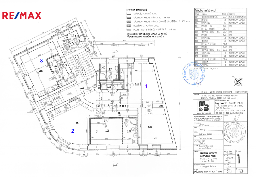 V domě jsou i další byty k prodeji s dispozicí 2+kk, 3+kk ve druhém a třetím podlaží.
