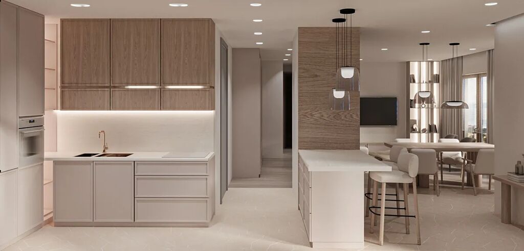 Každá vila má 3 patra. V prvním a druhém patře se nacházejí apartmány s 12 ložnicemi. Ve třetím patře se nachází exkluzivní penthouse s prostornou střešní terasou, která nabízí fantastický výhled na okolí a možnost užívat si vířivku. Všechny apartmány jsou nezařízené, což ponechává prostor pro personalizaci. Pro maximální pohodlí je instalována klimatizace. Podlahové vytápění v kuchyni a koupelnách.