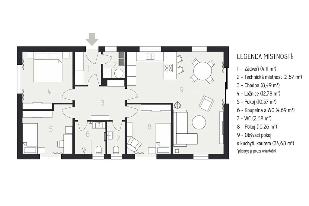 *Novostavba možnost bydlet v novém domě podle nejmodernějších standardů.
