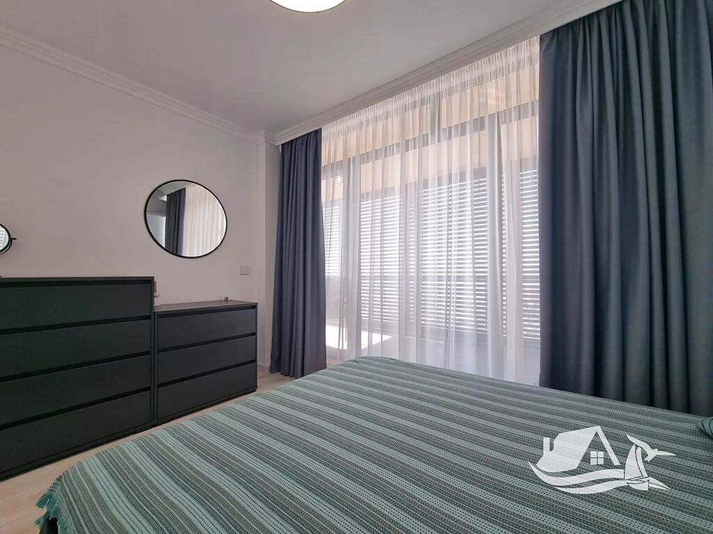Tento prostorný apartmán 2+kk o ploše 78,56 m² se nachází ve 3. podlaží elegantního šestipatrového komplexu v první linii u moře. Interiér je navržen tak, aby nabízel dostatek prostoru i přirozeného světla. Dispozice zahrnuje světlý obývací pokoj s kuchyňským koutem, útulnou ložnici, koupelnu a terasu, z níž se otevírá panoramatický výhled na moře. Každý krok po této terase připomíná, že moře je zde skutečně součástí vašeho života.