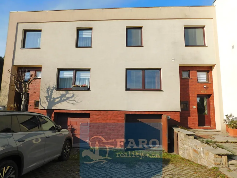Exklusivně nabízíme k prodeji řadový, podsklepený RD o velikosti 6+1 s garáží ve Znojmě, v městské části Přimětice, dům o dvou nadzemních podlažích je podsklepený. Ze vstupní chodby je schodiště jak do sklepa, tak i do obou obytných podlaží. Dispozice 1.NP: kuchyň s jídelnou – 20m2 + spíž, samostatná toaleta s umývadlem, pokoj, obývací pokoj – 21m2 se vstupem na terasu – 12m2. Z prostorné terasy vede venkovní schodiště do okrasné zahrady s altánem. Zahrada je přístupná i z druhé strany pozemku po asfaltové komunikaci. Dispozice 2.NP: 4 pokoje – 18,14,12,10 m2, koupelna se sprchovým koutem, toaletou a bidetem. V mezipatře mezi 1. a 2.NP je sklad – 12m2. Zahrada má nové oplocení z hliníkových panelů, skýtá soukromí a je ideální pro odpočinek celé rodiny. Na zahradu je také vstup ze sklepní části, kde je dílna – 14m2, prádelna, samostatná toaleta a garáž. Konstrukce budovy je z pálených bloků – šířka 44cm, zateplení 80 mm, vytápění je ústřední plynové (nový kotel zn.Vaillant), ohřev vody el. boilerem (také nový), 230V, 400V, optický internet, vodovod, veřejná kanalizace. V garáži je parkování pro jedno auto, před domem další parkovací místo. Městská část Přimětice nabízí veškerou občanskou vybavenost. Je zde základní škola, mateřská školka, obchody, restaurace, nemocnice Znojmo cca 4km, centrum města Znojma cca 5km. Dům je plně funkční a ihned k nastěhování. Uvedená cena je včetně provize RK.