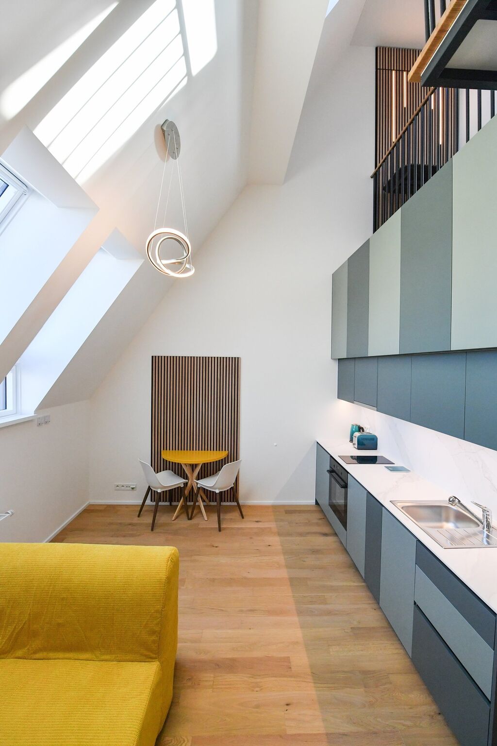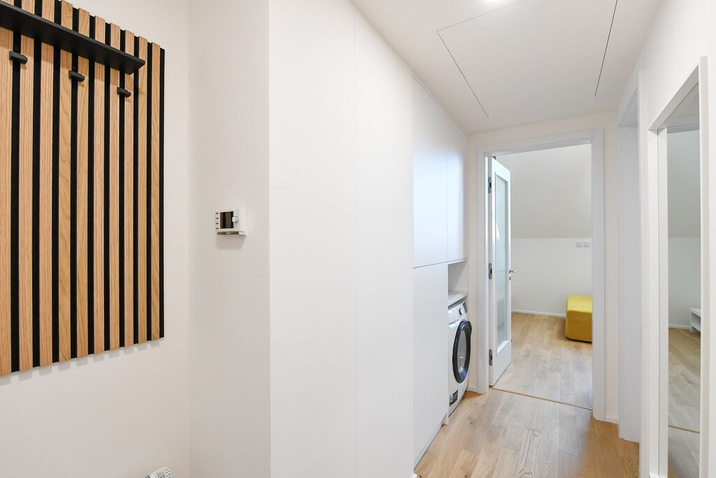 Moderní, luxusní novostavba s jedinečným mezonetovým uspořádáním bytu 2+kk v atraktivní lokalitě Holešovic nabízí komfortní, bydlení pro náročné nájemníky. Byt je umístěný ve 4. patře cihlového domu projektu Astrid Garden, který byl nominován v soutěži Estate Awards na cenu za nejlepší prémiový projekt. Dispozice bytu je promyšlená a prakticky řešená s užitnou plochou cca 44 m². Tento mezonetový byt je rozdělen do dvou útulných úrovní a je zařízen moderně a stylově. Vysoká kvalita interiéru a praktické vybavení zahrnuje kompletně zařízenou kuchyňskou linku s indukční varnou deskou, troubou i myčkou nádobí, skládací jídelní stůl se židlemi, rozkládací gauč pro příležitostné přespání hostů, vestavěné skříně v předsíni, pračku a prostornou koupelnu se sprchovým koutem. V horní části bytu je ložnice s postelí a pracovní kout. Všechna okna i rolety na nich jsou elektricky ovládána dálkovým ovládáním. Byt je vybaven rekuperací a klimatizací. Sportovně ladění zájemci jistě ocení kolárnu s myčkou na kola. Skvělým bonusem je také možnost zajištění pravidelného úklidu. V domě je možnost pronájmu podzemního parkovacího stání (cca 3.000,-Kč měsíčně). Tato nemovitost je ideální pro jednotlivce nebo mladé páry, kteří hledají moderní a komfortní bydlení v prestižní lokalitě s dobrou dostupností a veškerou občanskou vybaveností v blízkosti. Buďte první, kdo bude mít možnost v tomto krásném bytě bydlet a užívejte si moderní bydlení v centru Prahy. Preferujeme nekuřáky bez domácích mazlíčků. Volné ihned.