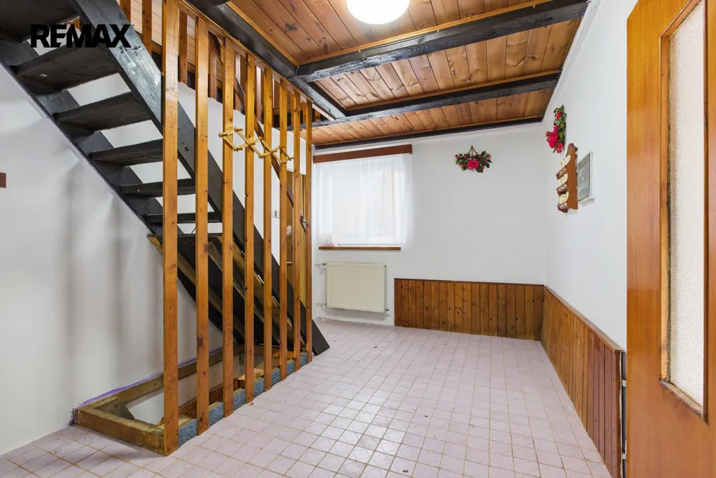 V patře se nachází jeden větší pokoj a menší mezipokoj. K dispozici je Vám také sklep, který se hodí pro uložení potravin nebo třeba i Vaší vinné sbírky.